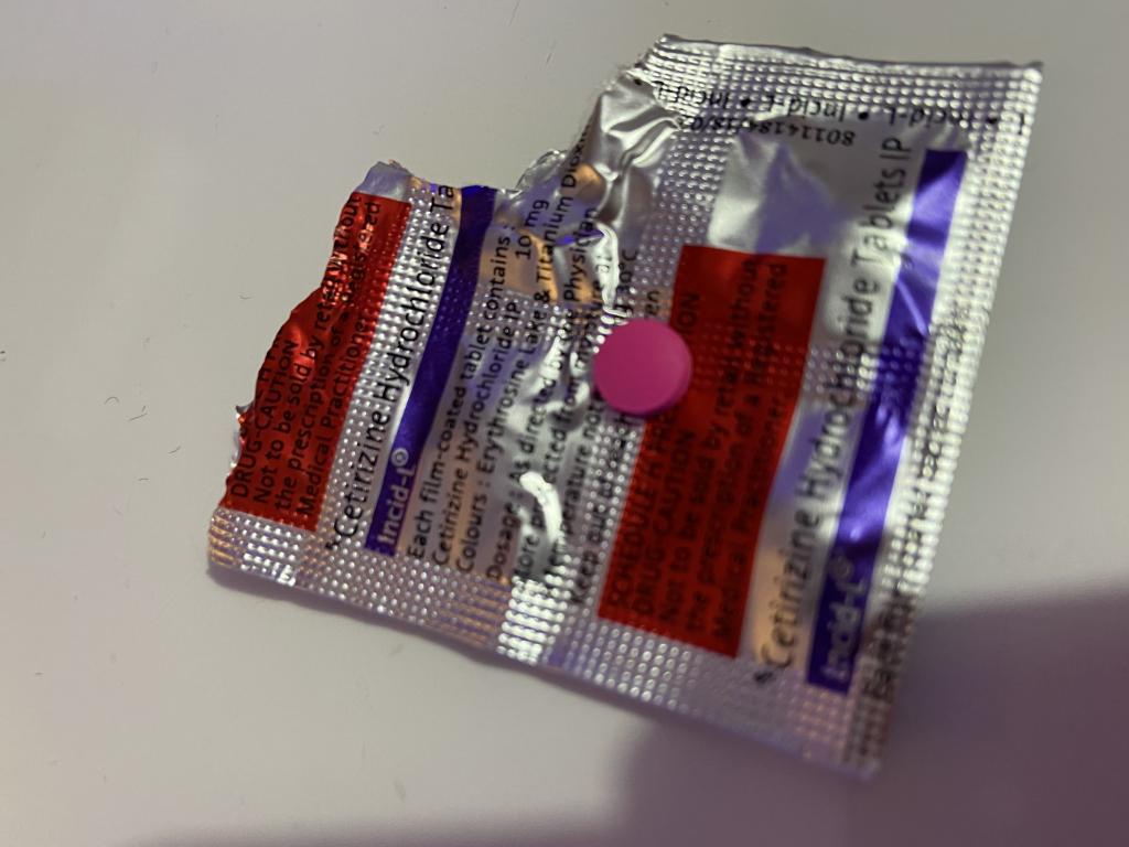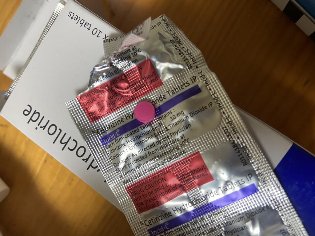 会社の産業医にかかりジルテックを頂いていました、閉院してしまい産業医がまだ決まらず、病院に行くのも面倒でこちらで注文しました。日本のものとは違い錠剤がショッキングピンク!!色にびっくりしたものの効き目は日本のものと変わりなく効いています。なくなったらまた注文します。